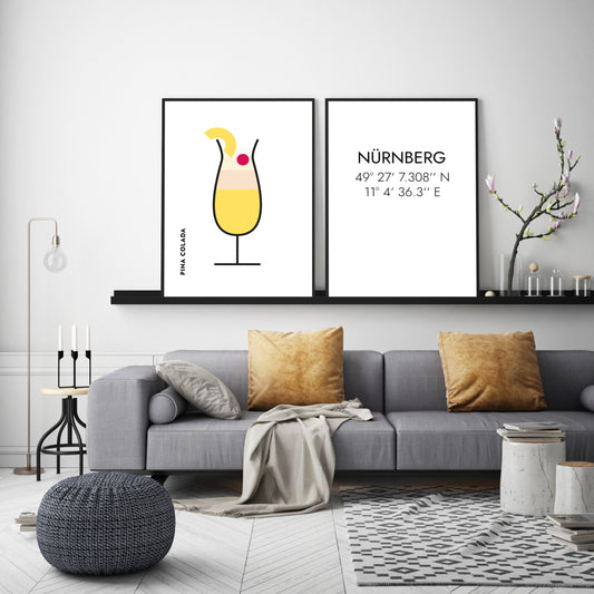 Poster Pina Colada im Glas (Bauhaus-Style)